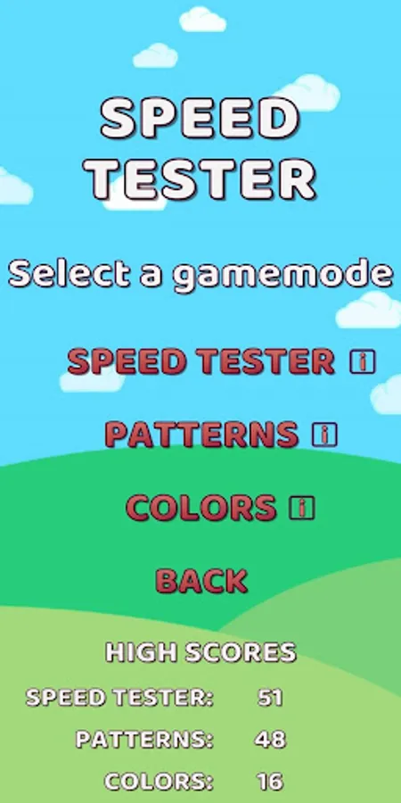 Speed Tester is an ad-free basic speed tester game. It has three different modes, including "Speed Tester", "Pattern memorization" and "Color matching". All content in the game was made by Risto Halme.