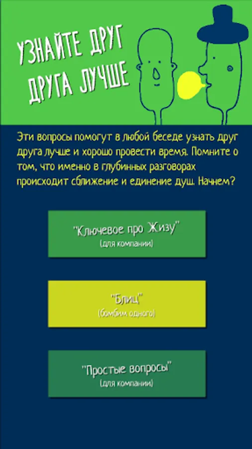 Если вы собрались компанией и что-то разговор начинает подвисать - просто запустите приложение и попробуйте, мы сами тестировали на себе и зашло прям на ура.))