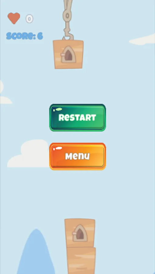 You will start the game with 3 lives, and one life will be deducted if a block fails to land. When all 3 lives are gone, the game ends. Steady the base structure and soar above the sky!