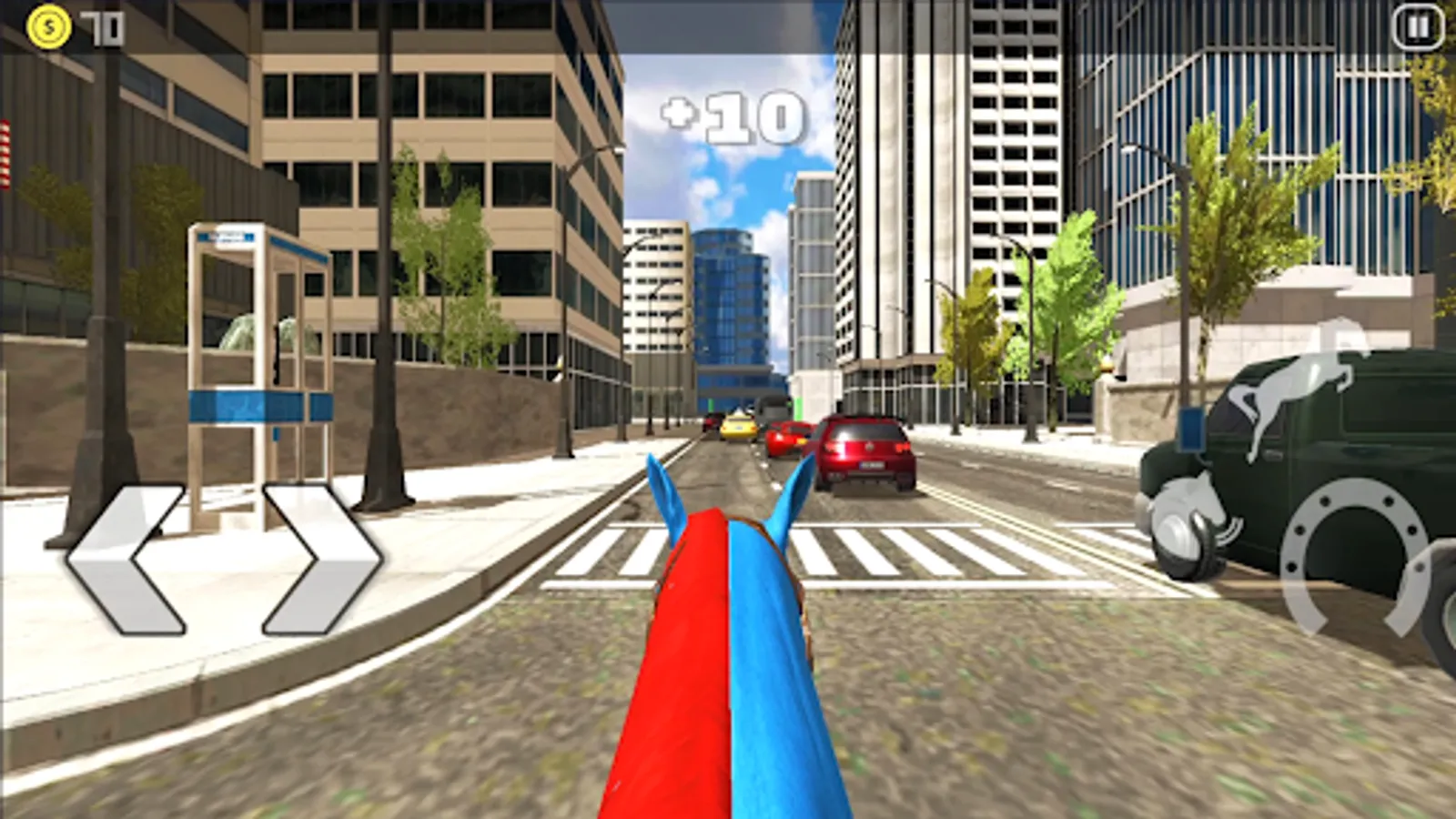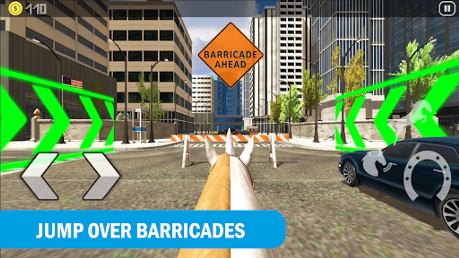 In this Horse Riding game, enjoy riding a horse in traffic. Close pass or jump over the vehicles to earn points. Purchase unique and faster horses with the poıints earned. Jumping over the vehicles or barricades gives you X2 more points.