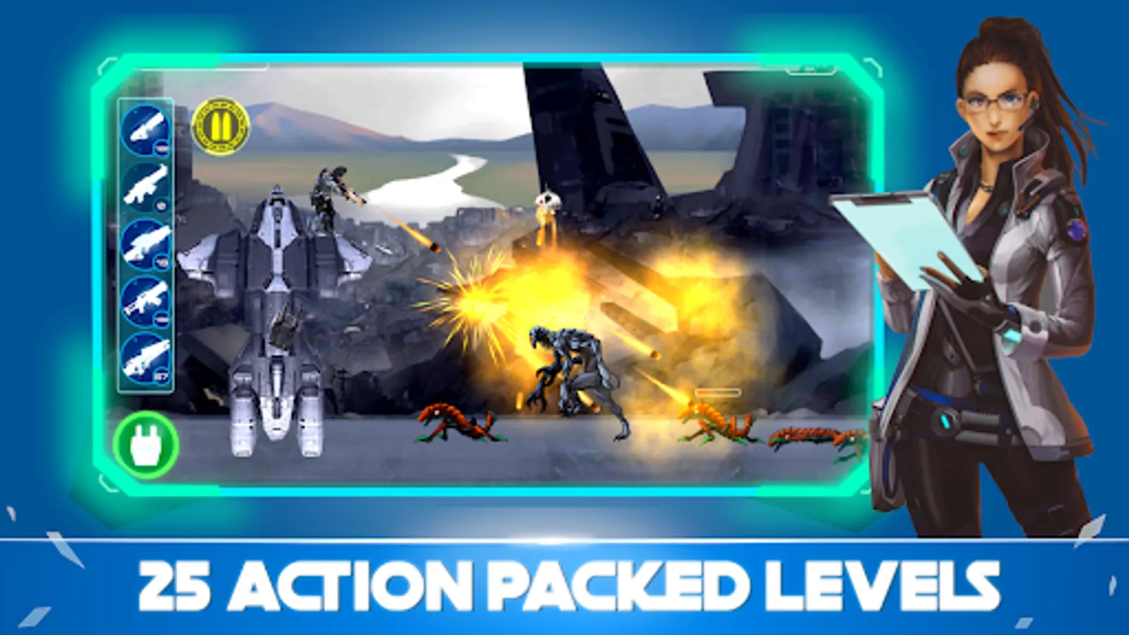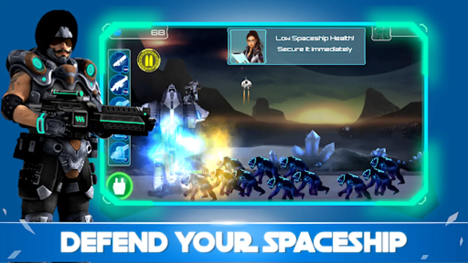 Gameplay- Come up with a strategy! Load your weapons. Beat the monsters! Survive the attack and achieve victory in the battleground. These evil aliens may know no mercy, every single one of them is a challenge! But you can beat them all with the help of a war robot that accompanies you on the mission. You can also use the special guns attached to your spaceship. Watch out
