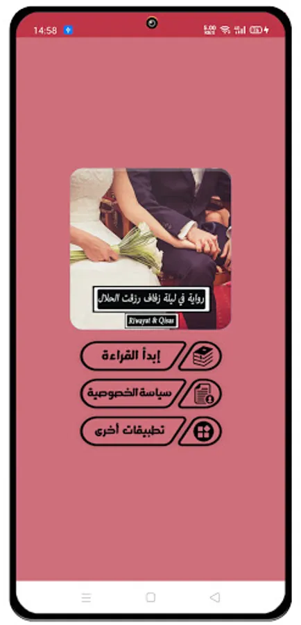 They downloaded the application of a novel on the wedding night of Rizqat Al-Halal by the writer / Sarah Muhammad Seif, and find out what will happen in romantic and fun events on this social novel.