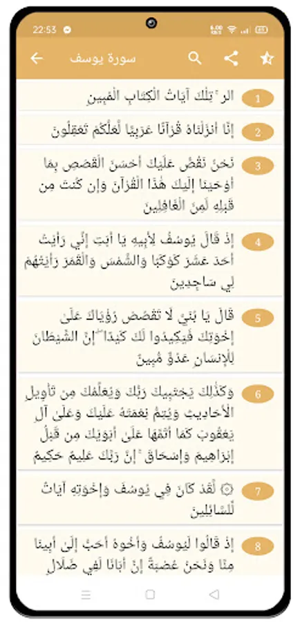 This application works without the Internet and is free, easy to use and very simple. It contains an icon purely to search for the word or verse that you want to interpret, and you can go to the Surah that you want, and you can share the interpretation with your friends.