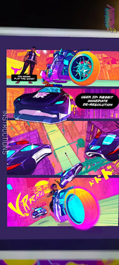 Experience the world of Neon Wasteland like never before with this next gen AR app that combines 2D, 3D animation, comics and music.