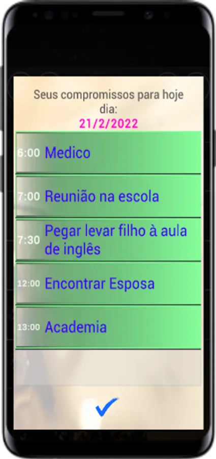 So if you need to schedule that meeting, medication time, child's class or any other type of appointment, don't forget, just open the app, select the day, and at the time, mark the appointment detail, and as soon as you open it the application, you will receive a summary with the appointments for that day.