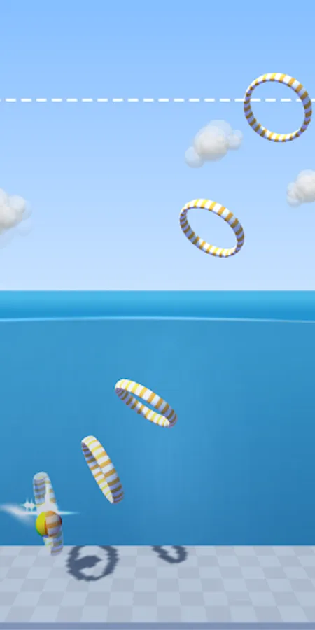 Dive and launch your ball into the air using buoyancy while collecting hoops!