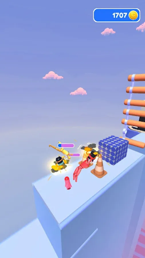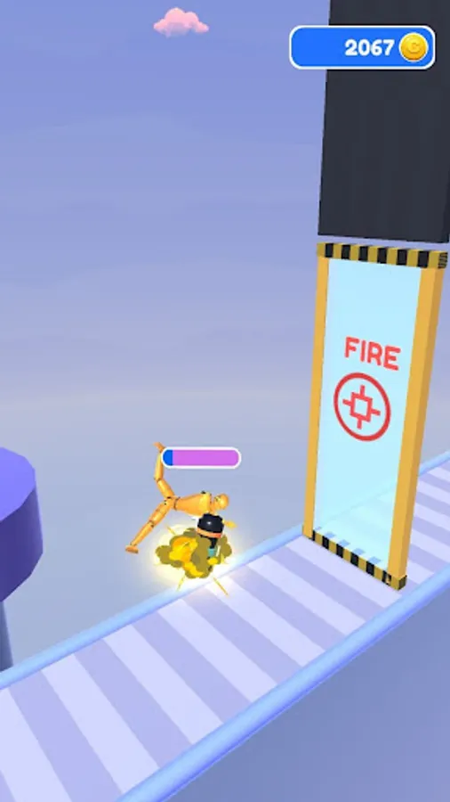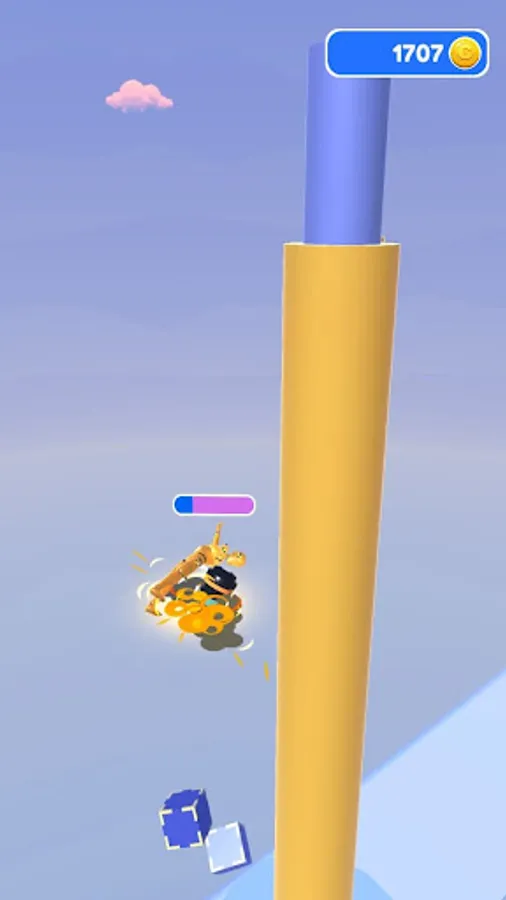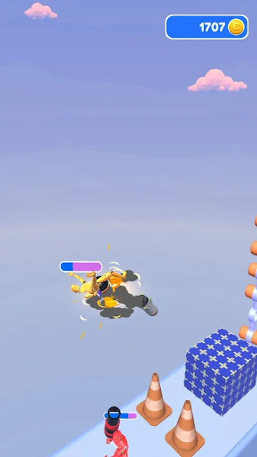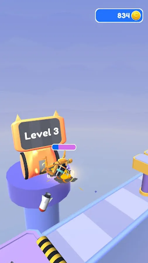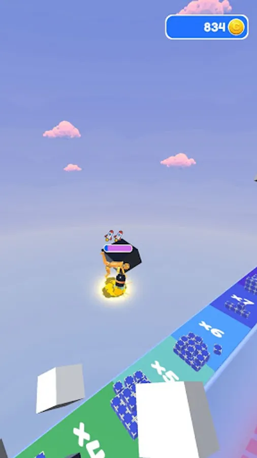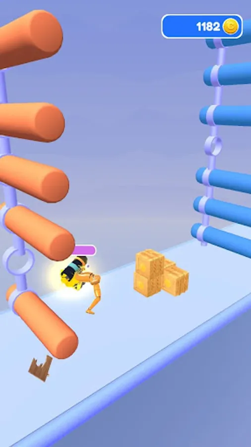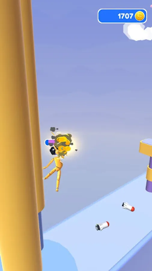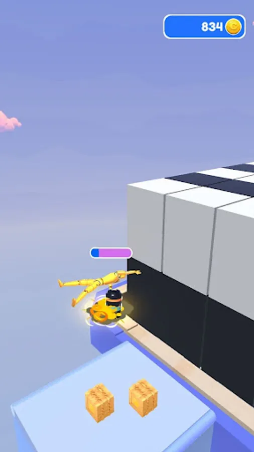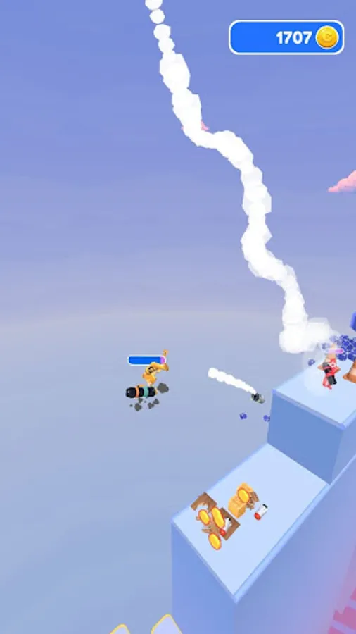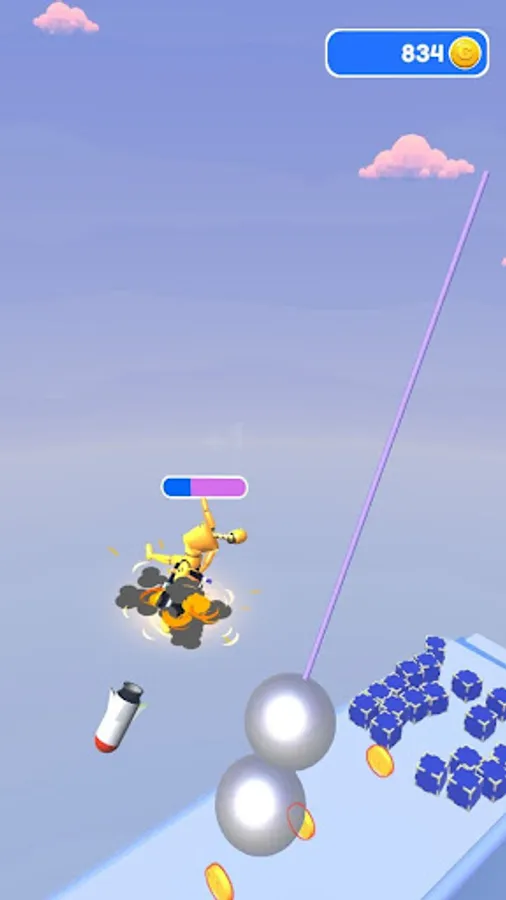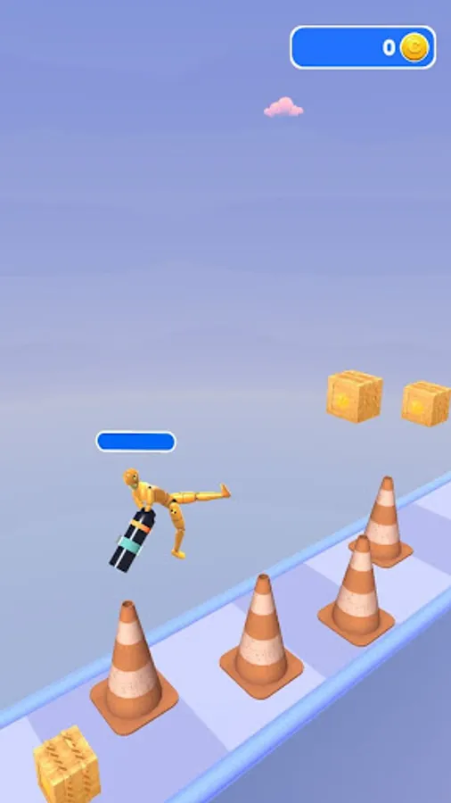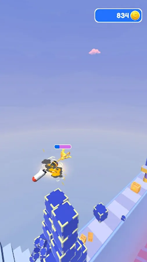 Launch rockets and fly forward on the rebound of the rocket launcher. Collect coins in boxes by smashing them along the way.