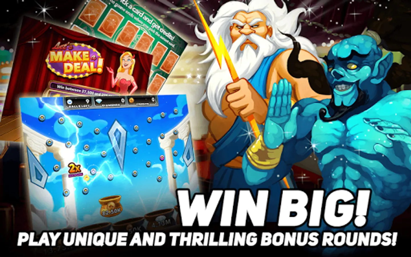 - Dazzling bonus games – Bounce your way to big wins with our Olympus Pachinko bonus round! Hit Multiplier Pegs for bonanza payouts! Win progressive bonus jackpots, or spin the wheels of fortune for mega rewards!