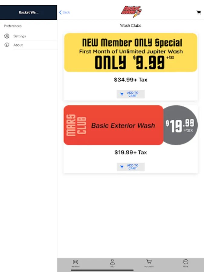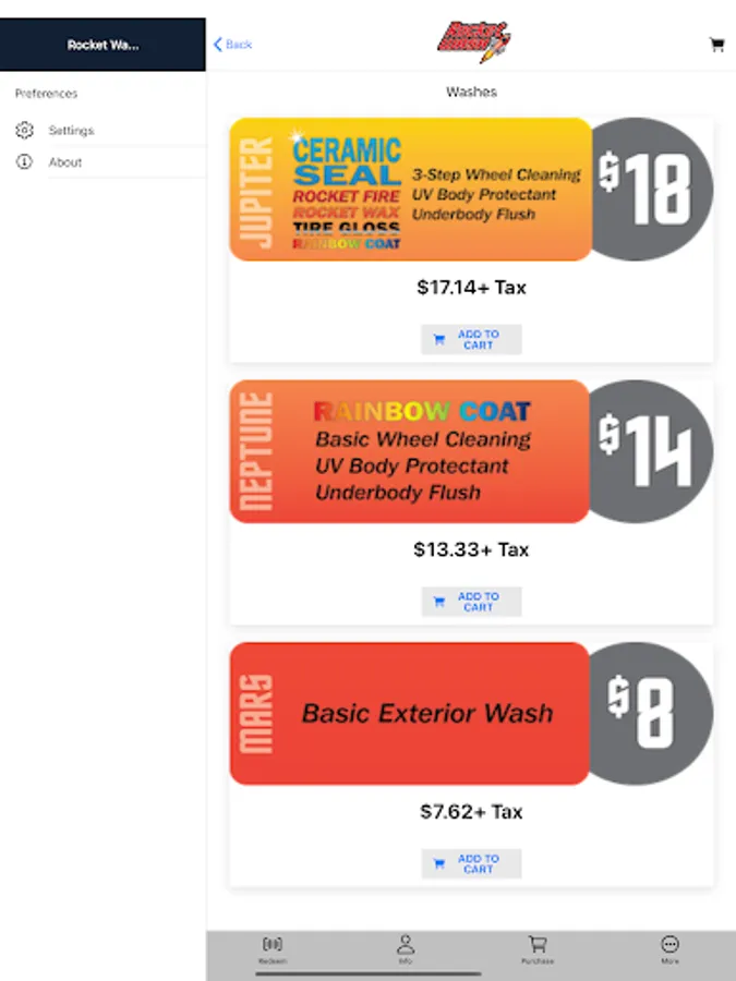 Rocket Wash is the new, easy-to-use app that provides you with access to the area’s finest car washes. Use our mobile app to create your own secure account to purchase individual washes, gift cards and to join subscription based wash clubs. You can add a credit card to your mobile app and make future purchases with just a card on file without having to open your wallet again. At the car wash, you can redeem your purchased wash remotely without rolling down your window to touch the screen. Simply enter your wash code or scan the barcode displayed in the app. You may also view a visual history of your purchases including date, time, service purchased. Rocket Wash combines convenience and technology to keep your vehicle sparkling!