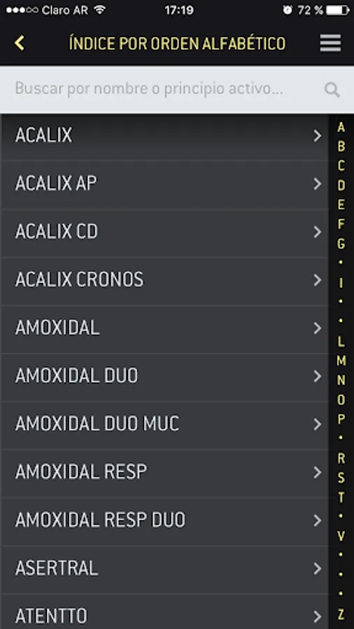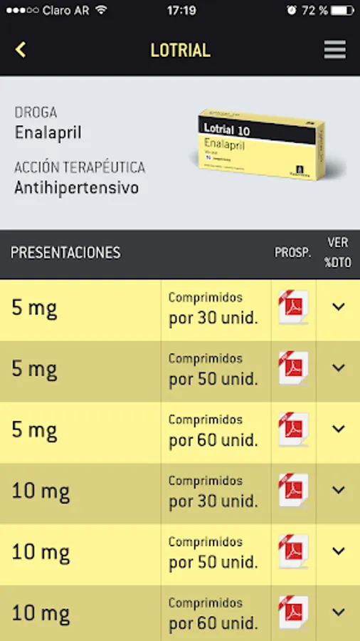 The application can access the list of products through its trade name or active ingredient that composes. Product description includes the discount has in the main social and Works Calling Argentina, as well as access to the product insert.