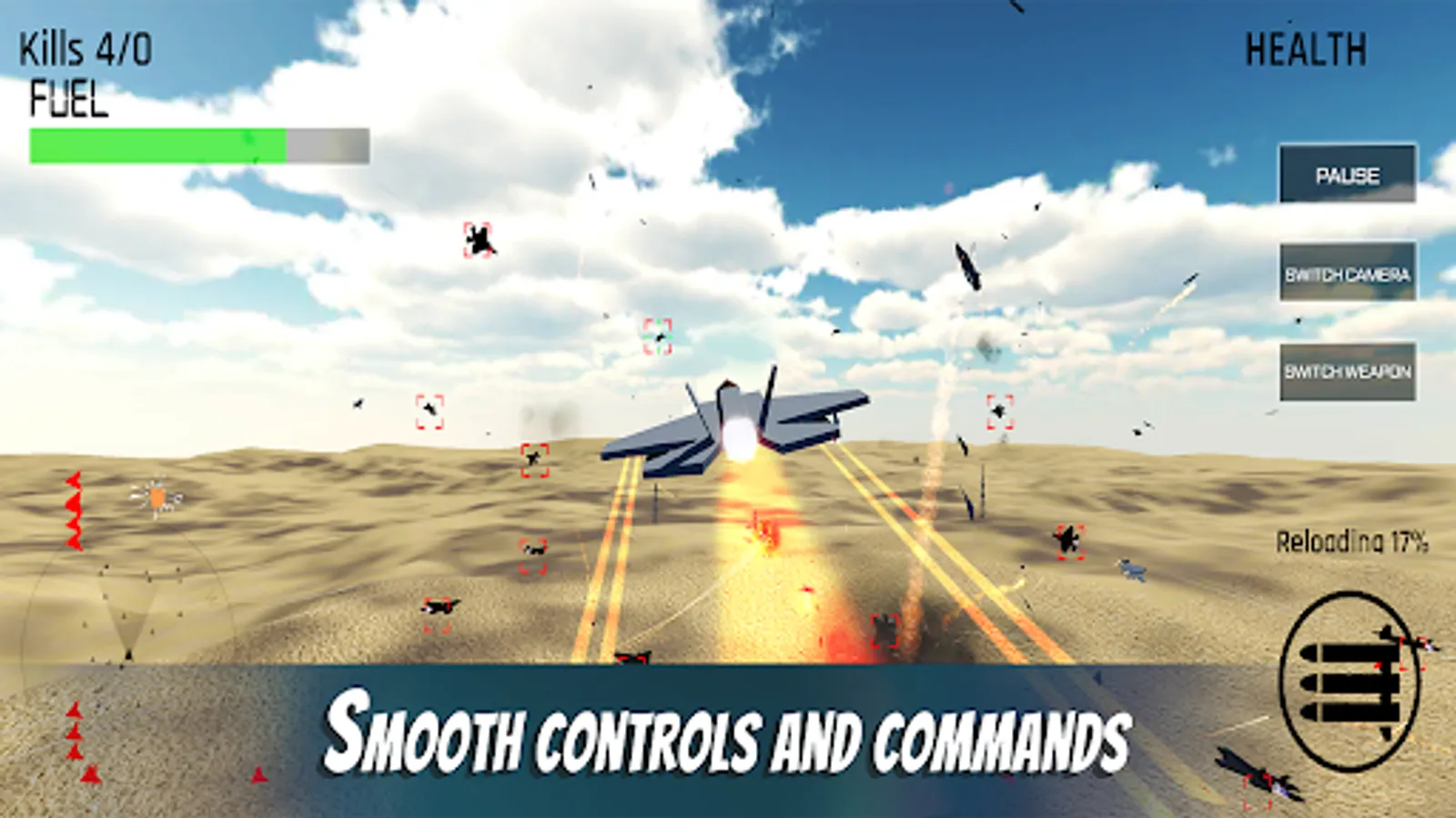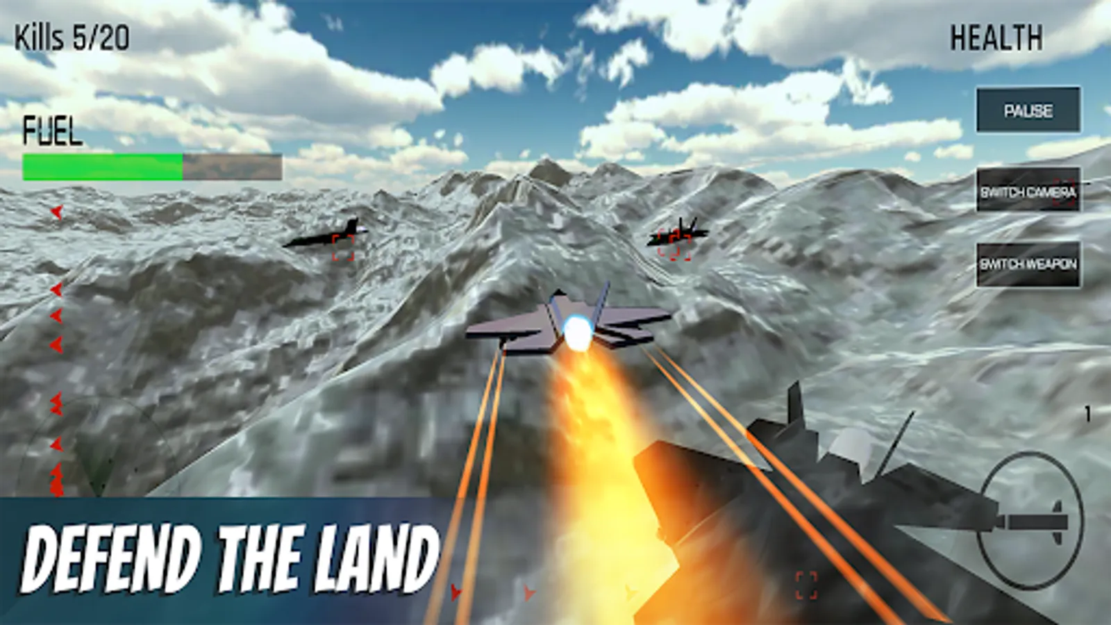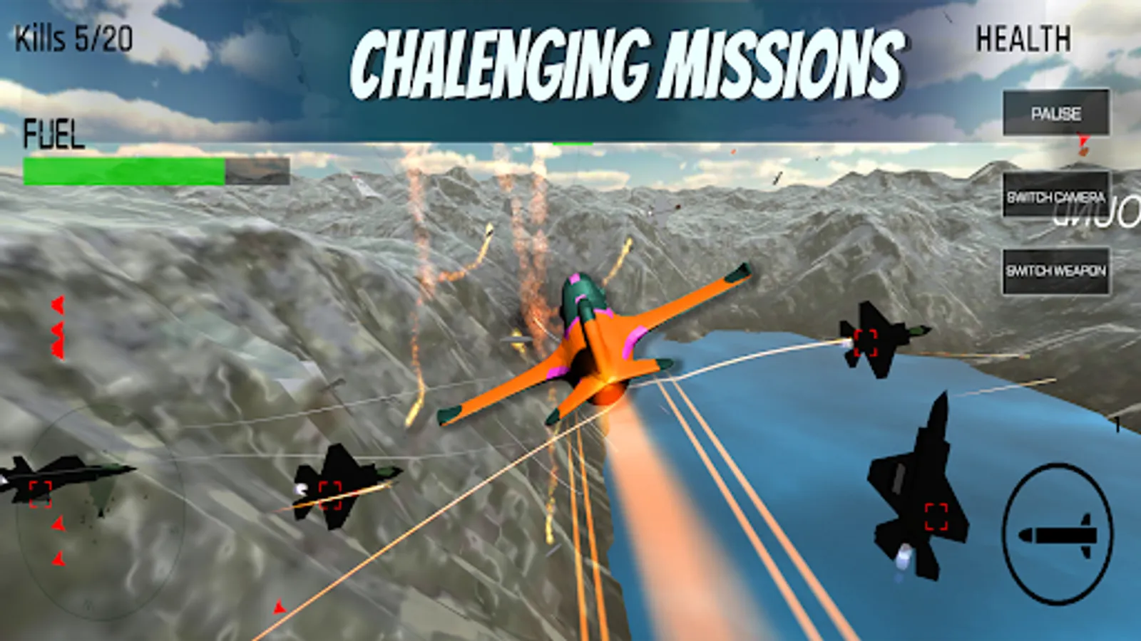 Fighter Jet games were never so interactive, fly into the unknown, and competes with the enemy’s jet fighters in air force war games. Master the art of jet fighting games and fighter planes games to sharpen your senses and flying skills in dog fight. Perform dizzying acrobatic maneuvers, get the enemy in your sights and hit the trigger to shoot them down. It’s a time to take off and become the best fighting pilot in airplane games. Spread your steel wings commander and join the combat! This game has multiple training and war missions of fighter jet games. Fighting games made more thrilling with interactive gameplay and epic war missions. Become a flying ace in Dog Fight, where you will face ever stronger enemy jets fighter: This airplane simulator is an offline games and free games which are full of different missions and objectives.