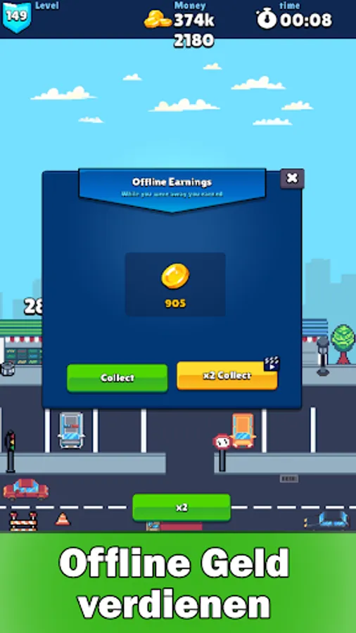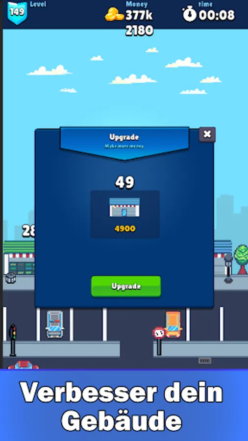 You start in a small town with a small store. Improve your business, earn more money and unlock new cities.
