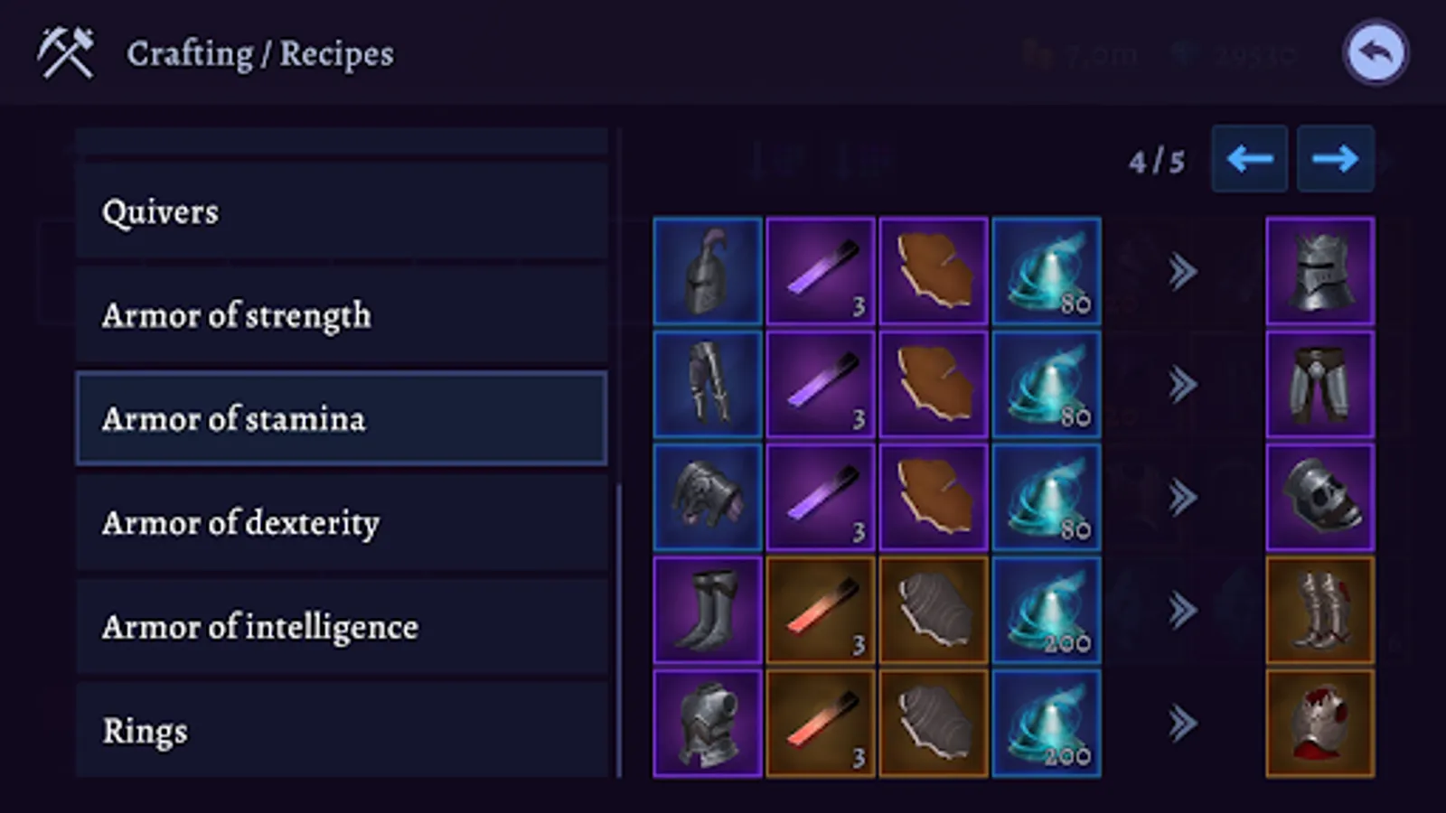 There are lots of possibilities to make your character stronger. There are 8 types and 6 rarities of equipment. You can make slots in your armor and place gems there, you can also combine several gems of one type to get an upgraded one. The smith in the town will gladly enchance and reforge your armor that will make it even better.