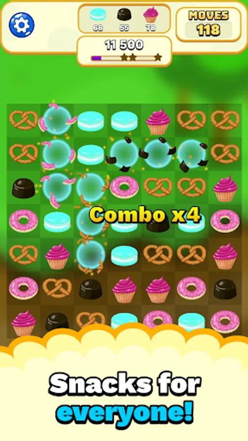 Fun little game where you match 3 or more of the same snacks, to create large combos!