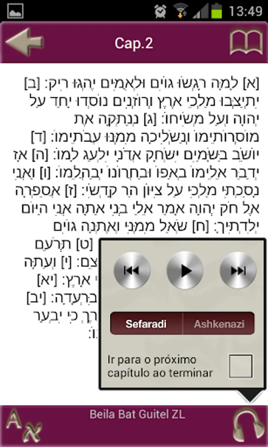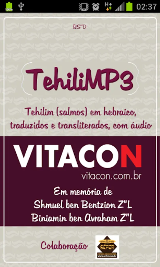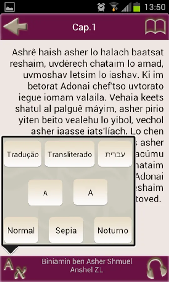 TehiliMP3 - the best and most complete app Tehilim for Android, with texts in Hebrew, Portuguese transliterated and translated, and 150 chapters narrated in Hebrew available part ($ 3.99 U.S.).
