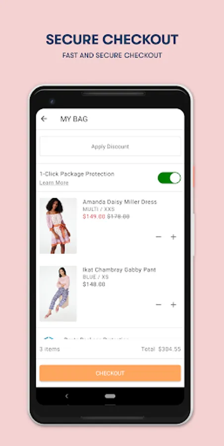 Tap, swipe, shop and secure your new products in an instant with our super easy checkout.