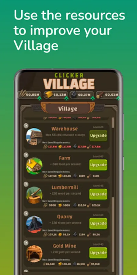 ★ Increase your warehouse to increase your maximum ability to earn resources.