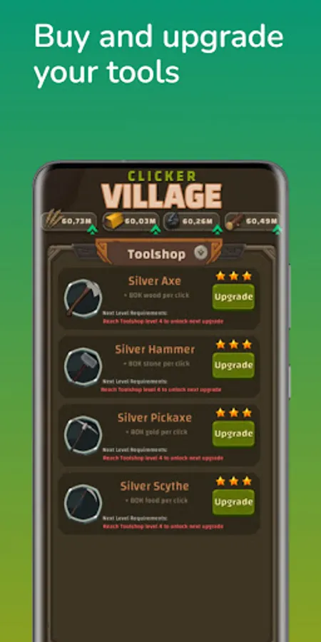 ★ Upgrade your tool shop to unlock improvements for your tools.