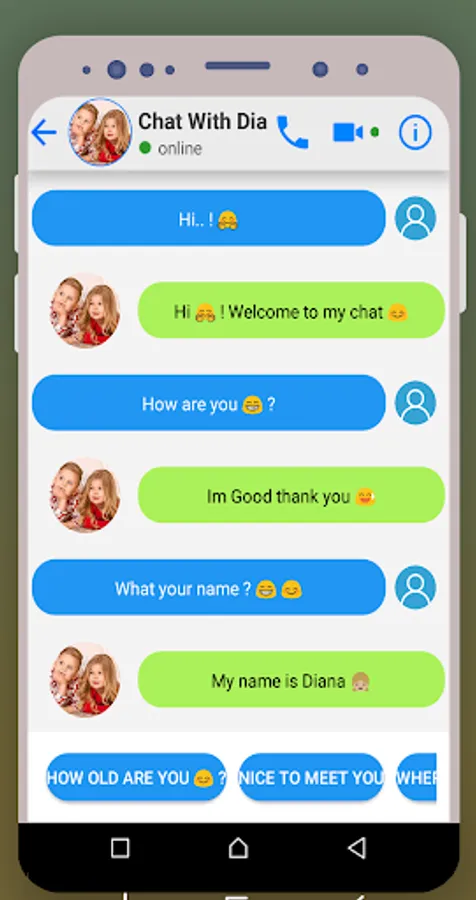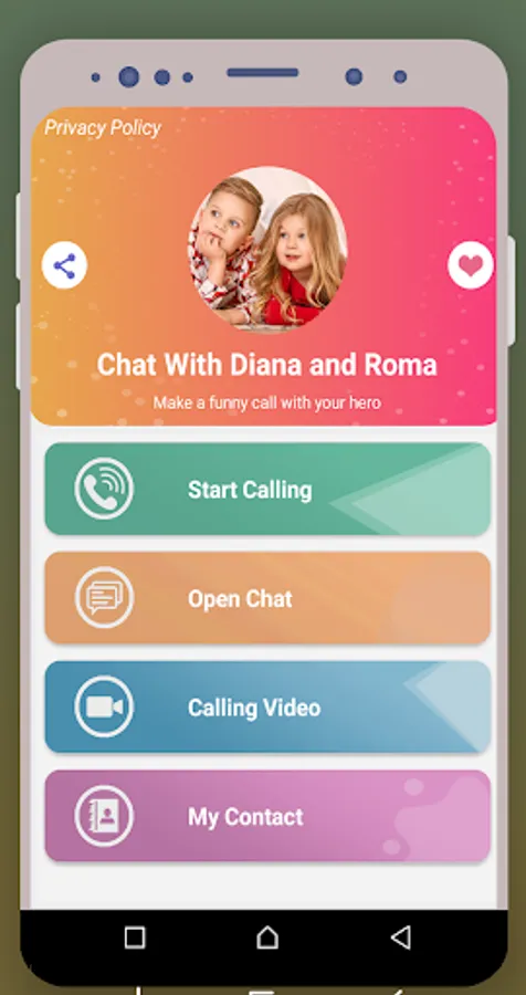 diiana and roma video call and Chat (Prank) is a simple and profissionel application to make call video with your Idol roma and diana chat call and fake video call with a simple live chat, Enjoy calling diana and roma call video with easy way, feel free and download this diana & roma video call for have fun with friend.