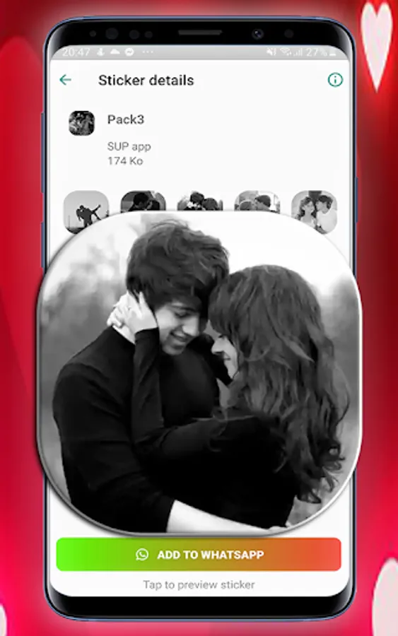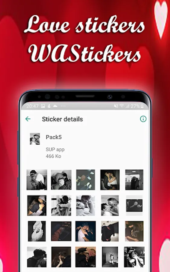 The best pack of love stickers for WhatsApp. Includes over 200 new love stickers. The classic Love sticker packs have finally arrived on WhatsApp. Enjoy these love sticker packs and share them with your boyfriend/girlfriend. Download this Love WAStickerApp for free.