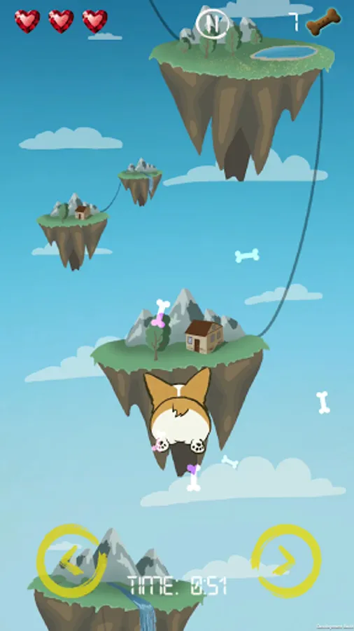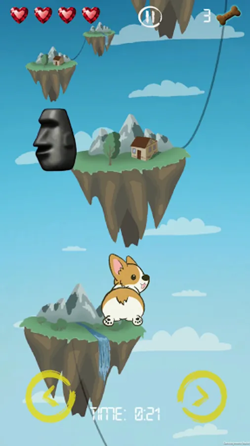 Fly and collect bones to replenish the Corgi's tummy not forgetting to dodge the Stone Idols.