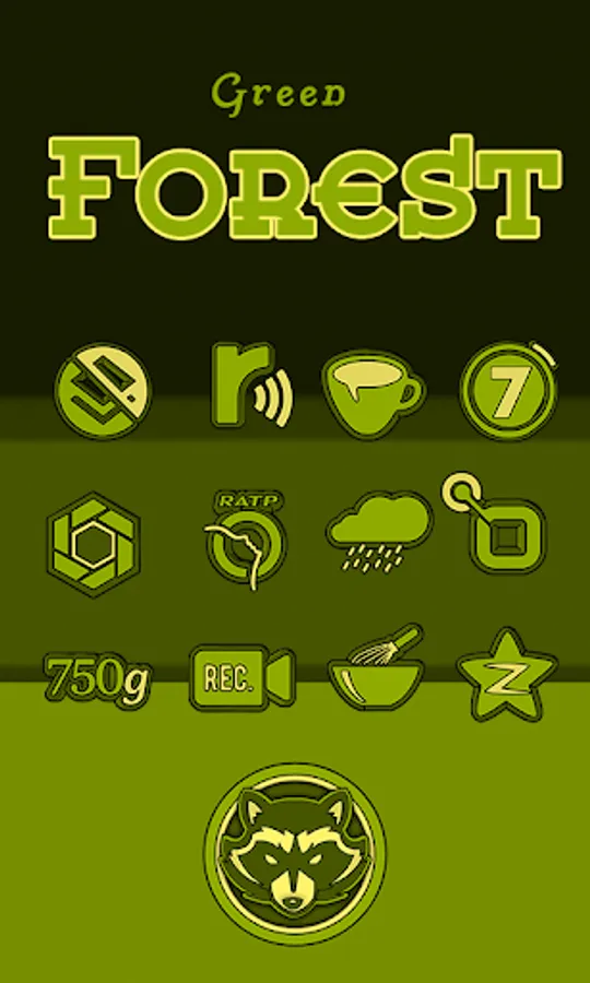 Green Forest comes with over 5400 HD hand crafted HD icons + themed HD wallpaper.