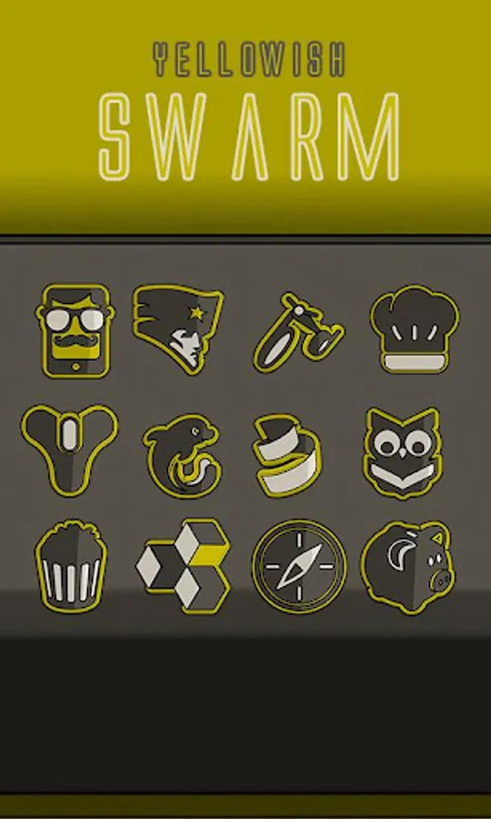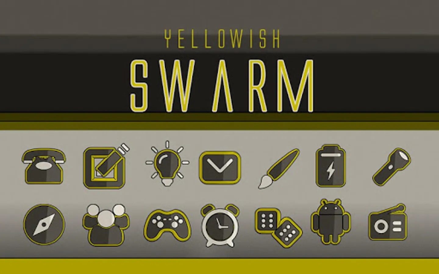 Yellowish Swarm comes with over 5400 HD hand crafted HD icons + themed HD wallpaper.