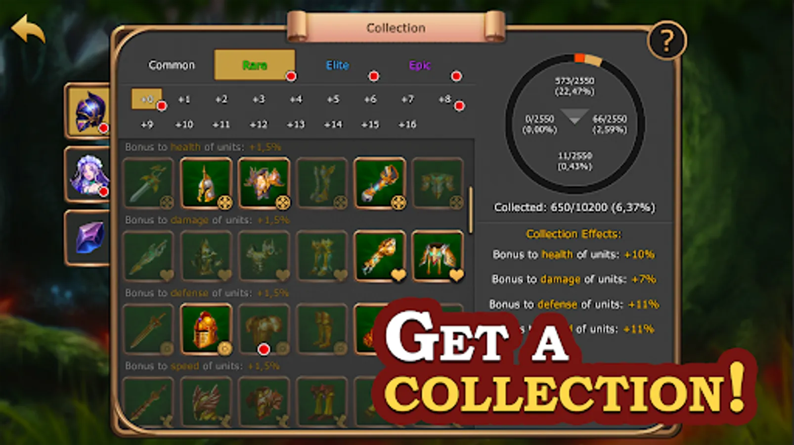 - Collect a set of equipment, heroes and gems acquired from the dungeon. Your collection is the key to strength, power and recognition..