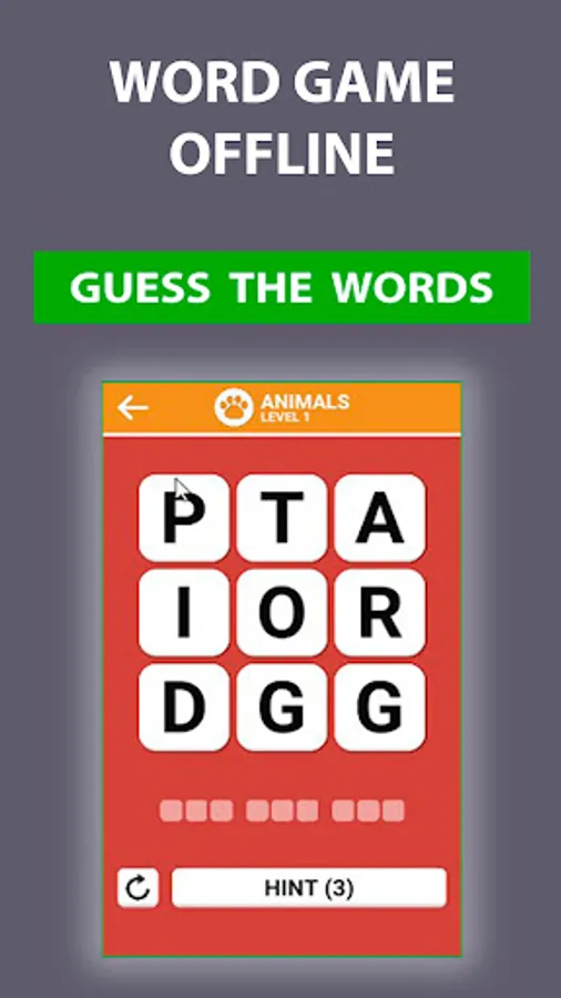 Thanks to the hints, you can calculate the whole correct word in the playing field.