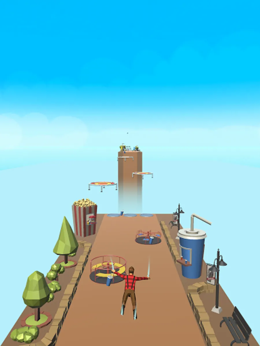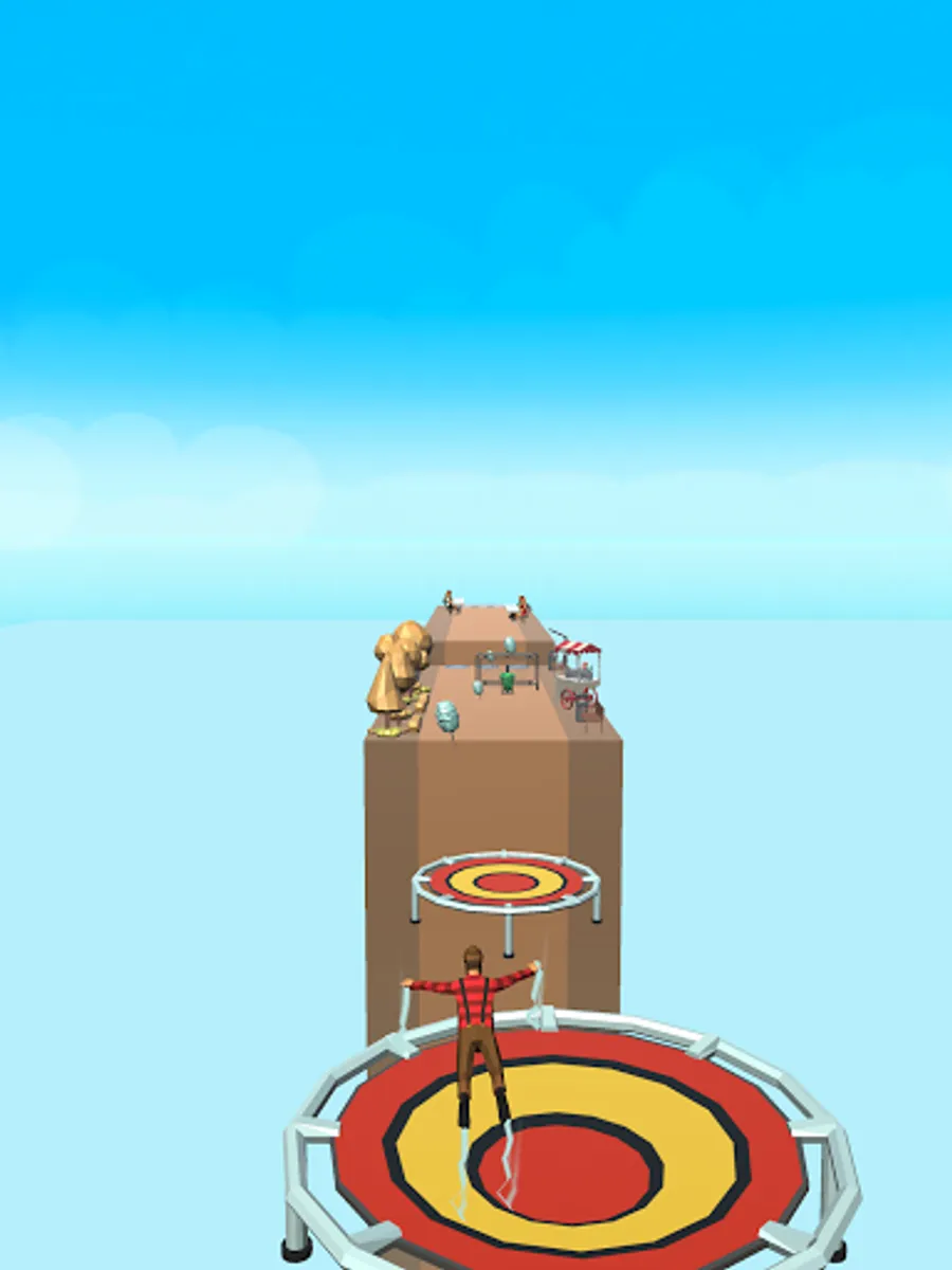 While you enjoy gliding between the big trampolines, play with different characters and decide on the color of the trampolines as you wish. What you need to do for these is to collect as much gold as you can in each section and dive deep into the store.