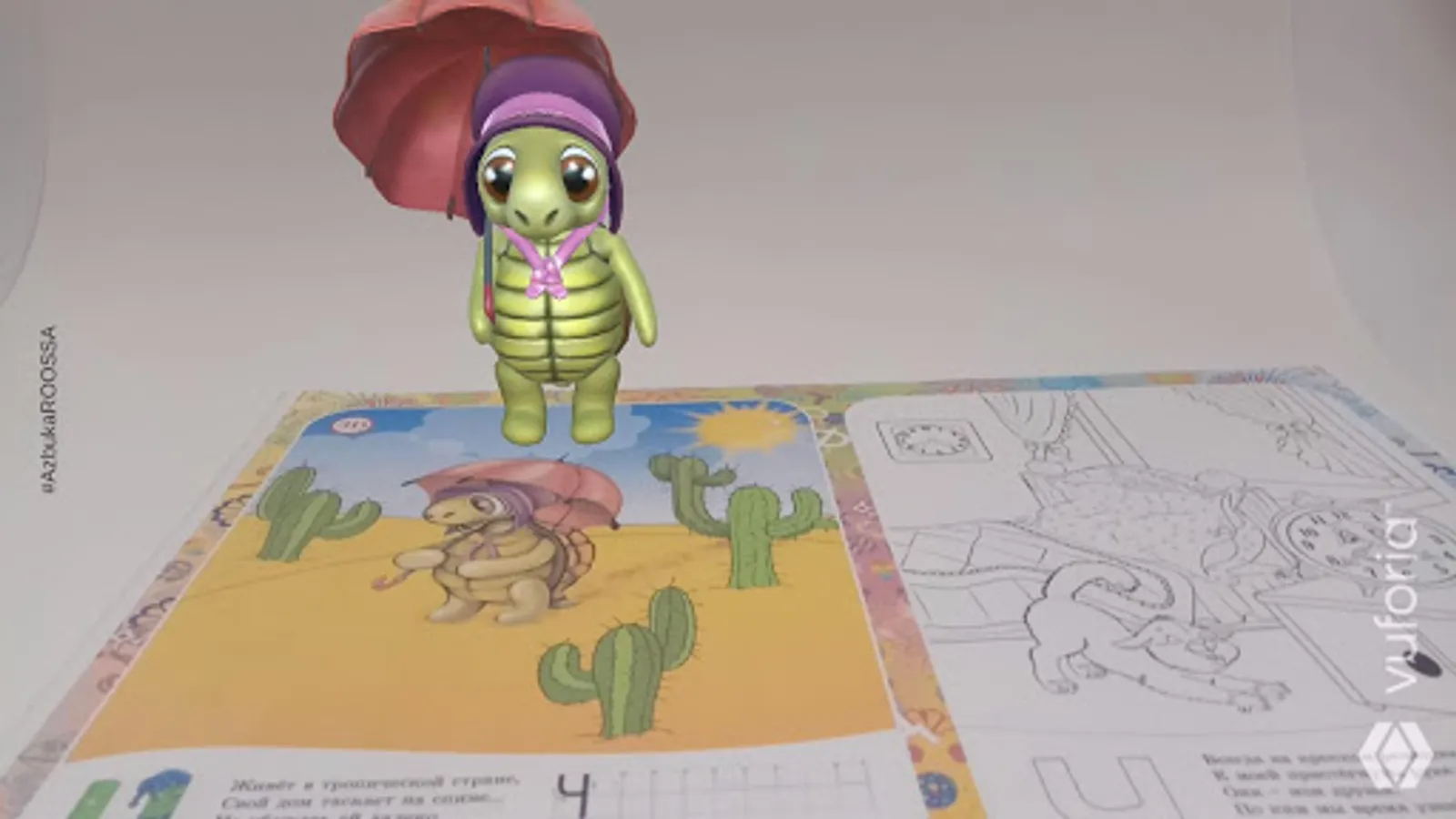 Breathing life into the characters of our book is easy. For this you do not need a magic wand or a special spell. All you need to do is download the Azbuka ROOSSA application on your tablet or smartphone, install and run it, and then point the device camera at the book page marked with this icon. And now the plane is already making a sharp turn in the sky, the frog talks about its main secret, and the naughty puppy diligently executes commands.