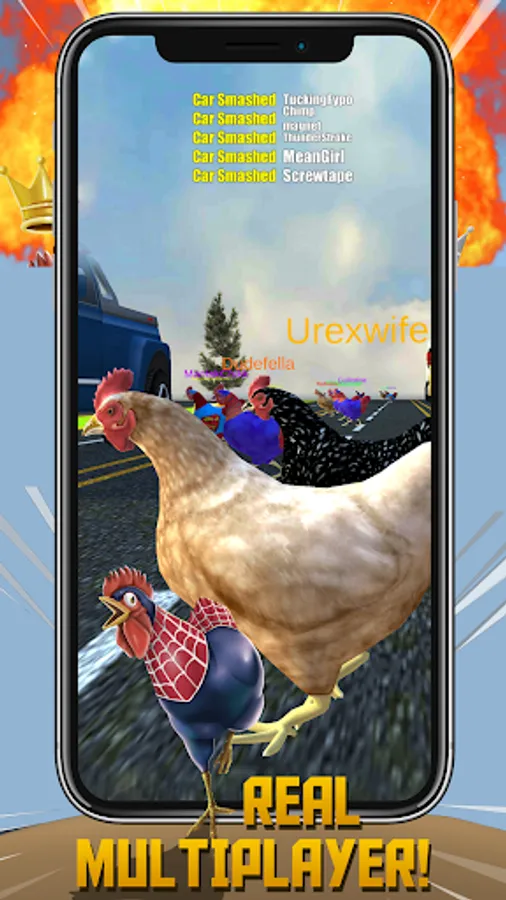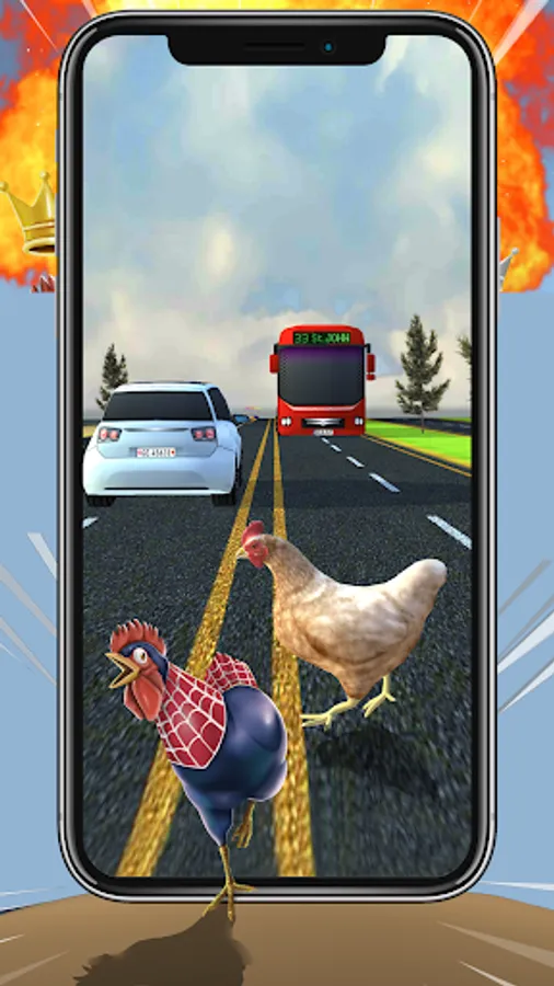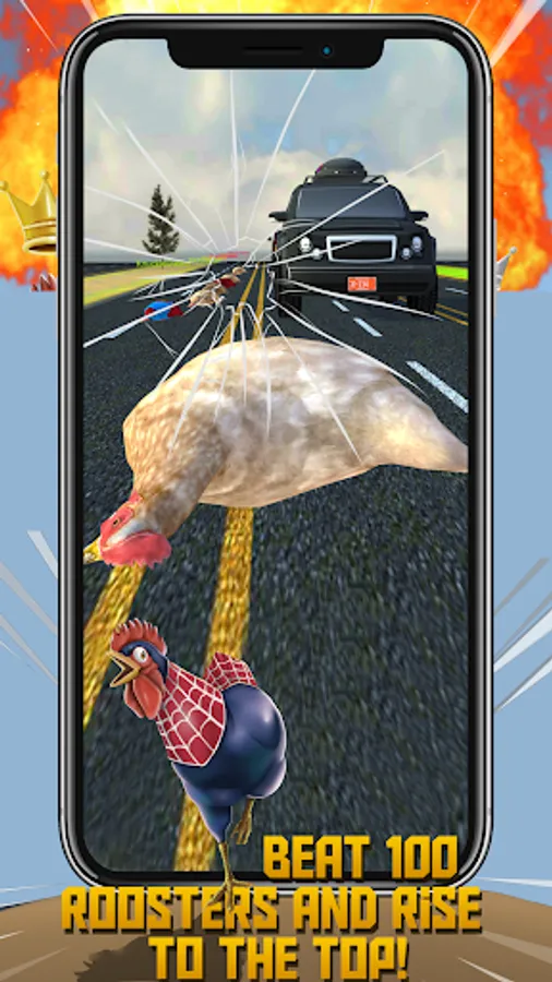 A true play with your friends or random people around the world 3D chicken crossing battle royale that will challenge your reaction time and patience as you battle those in your lobby and the world to be the number 1 player!