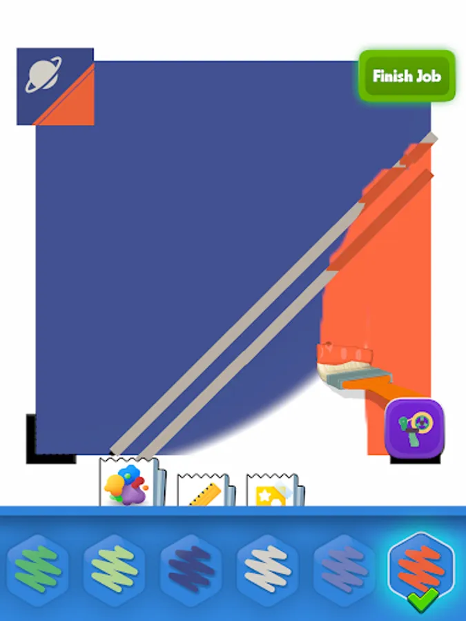 Paint all the white areas to complete each level. Swipe the paint left, right, up and down and make the desired design. Don't forget to tape the borders so you don't spill the paint!