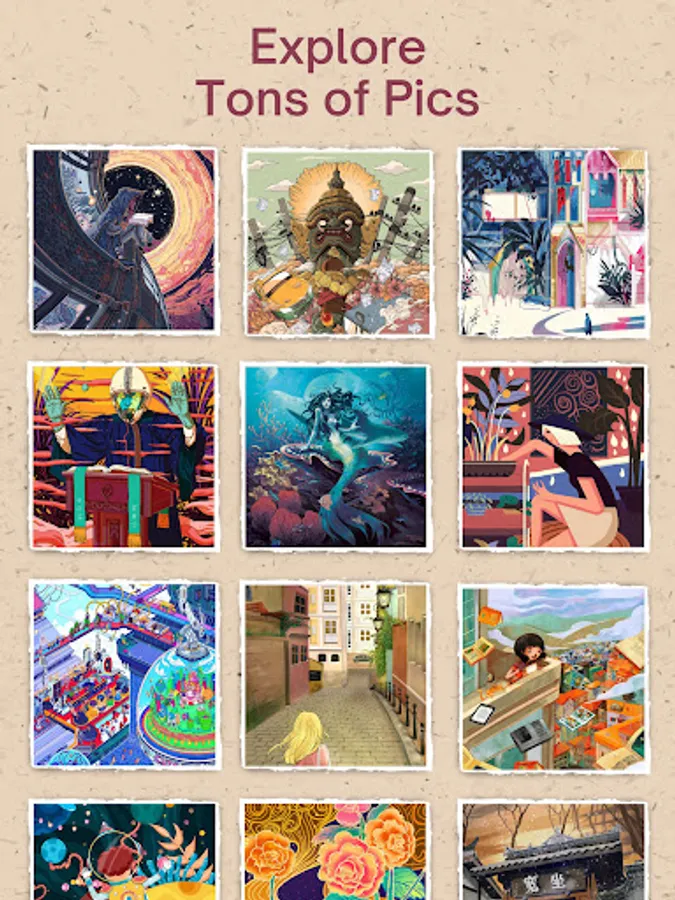 Designed as an app with relaxing games for stress-releaving, Block Jigsaw will give you an opportunity to take a break and enliven your daily routine. At first sight, you may think this block puzzle game is quite simple. However, some spots of magic picture puzzle are hidden and hard to perceive, so be ready for a challenge. You need to find hidden objects to solve the puzzle. We have created a simple but challenging tile matching mechanic to enhance your gaming experience and to make these calming block puzzle games even more interesting.