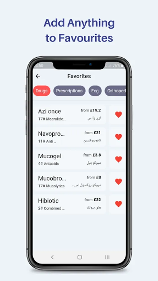 - يمكن للمستخدم انشاء قائمة مفضلة خاصة به وحفظ المقالات، الادوية والامراض التي يود الرجوع اليها في اي وقت