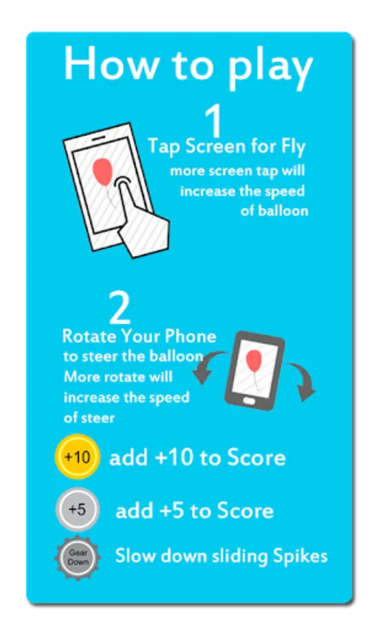 you can fly by taping the screen and drive it by rotate your phone, avoid the spikes obstacle and pick some coin to gain more Score, and beat the Highscore