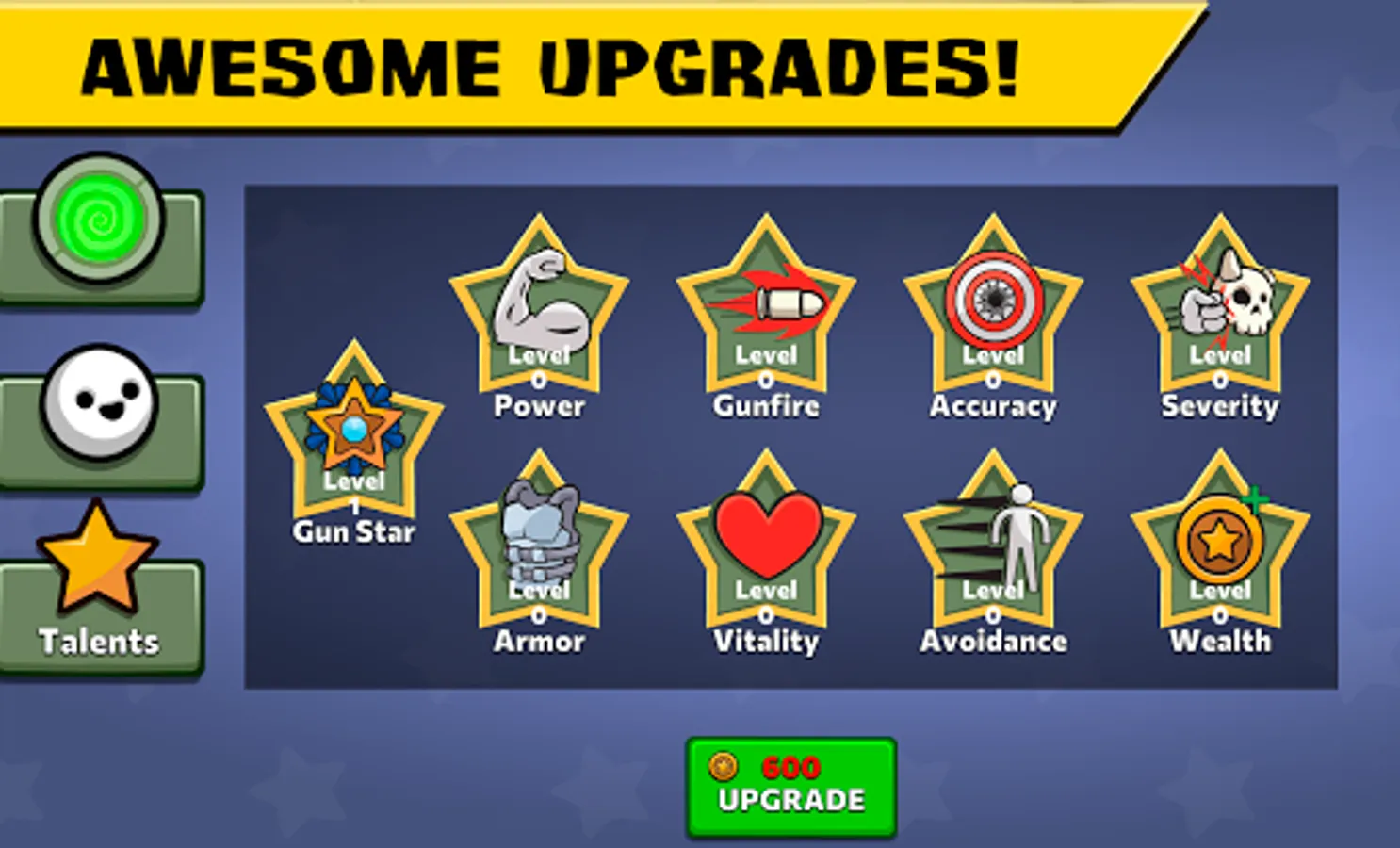 GUN STARS is a fun 2D arcade mobile game starring a military team. The game is packed with weapons, special abilities and humorous action. Get ready to save the world!