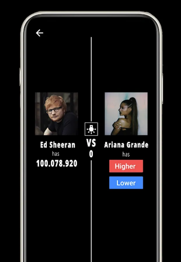 Higher or lower all game contains music, streamers, country, tuber, movie and more content. More or less style puzzles and mind games are discussed. All styles are available in higher lower game. It contains 1000+ content in total. You will learn and train your brain while having fun guessing the sizes.
