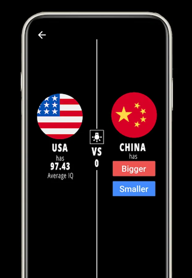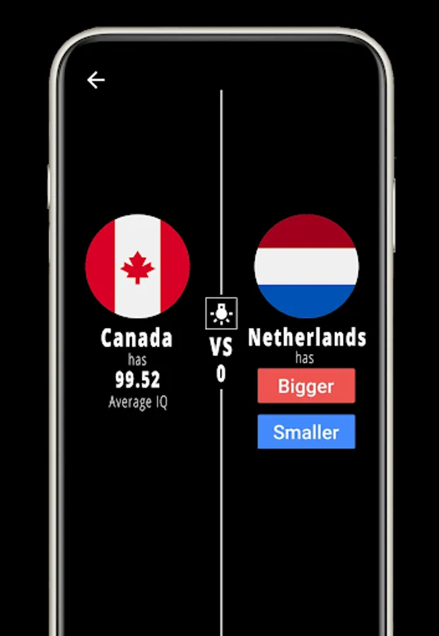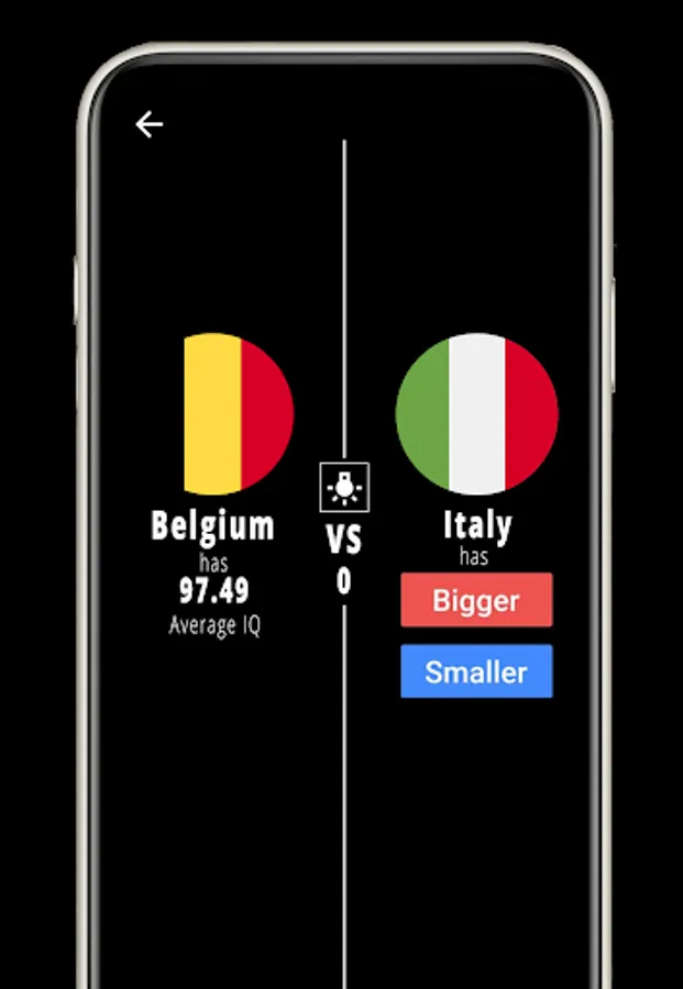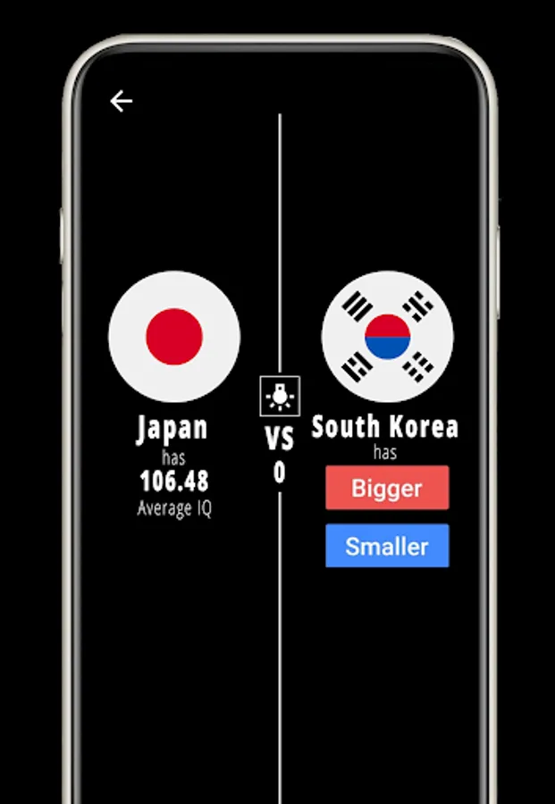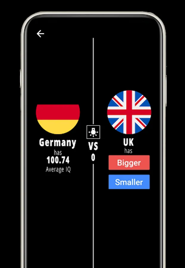The countries IQ puzzle has the most popular up and down style puzzles and mind games. There are 175+ countries in the Country IQ game. You will learn and train your brain while estimating the IQ. You will get to know new countries and have an idea about them. If you like number(bigger or smaller) and puzzle games, this game is for you!