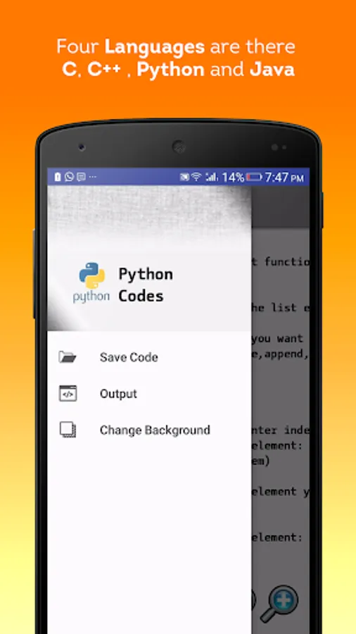 In our app, there is output for every code which will help you to understand, what is happening in the code. You can also change the background of code to read according to your vision and surroundings.
