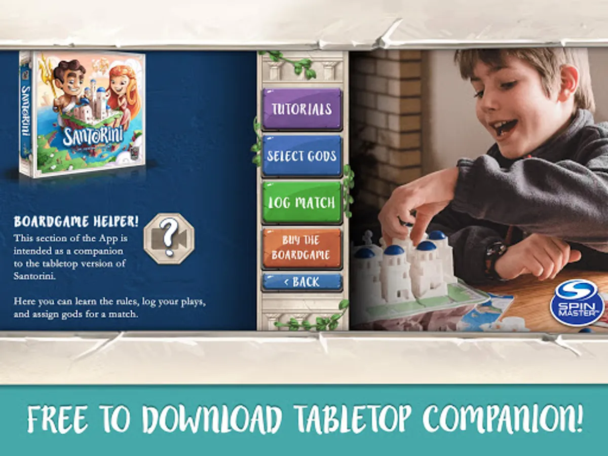 Note: This app does not include a playable version of Santorini. To play Santorini in an app, search "Santorini Board Game"