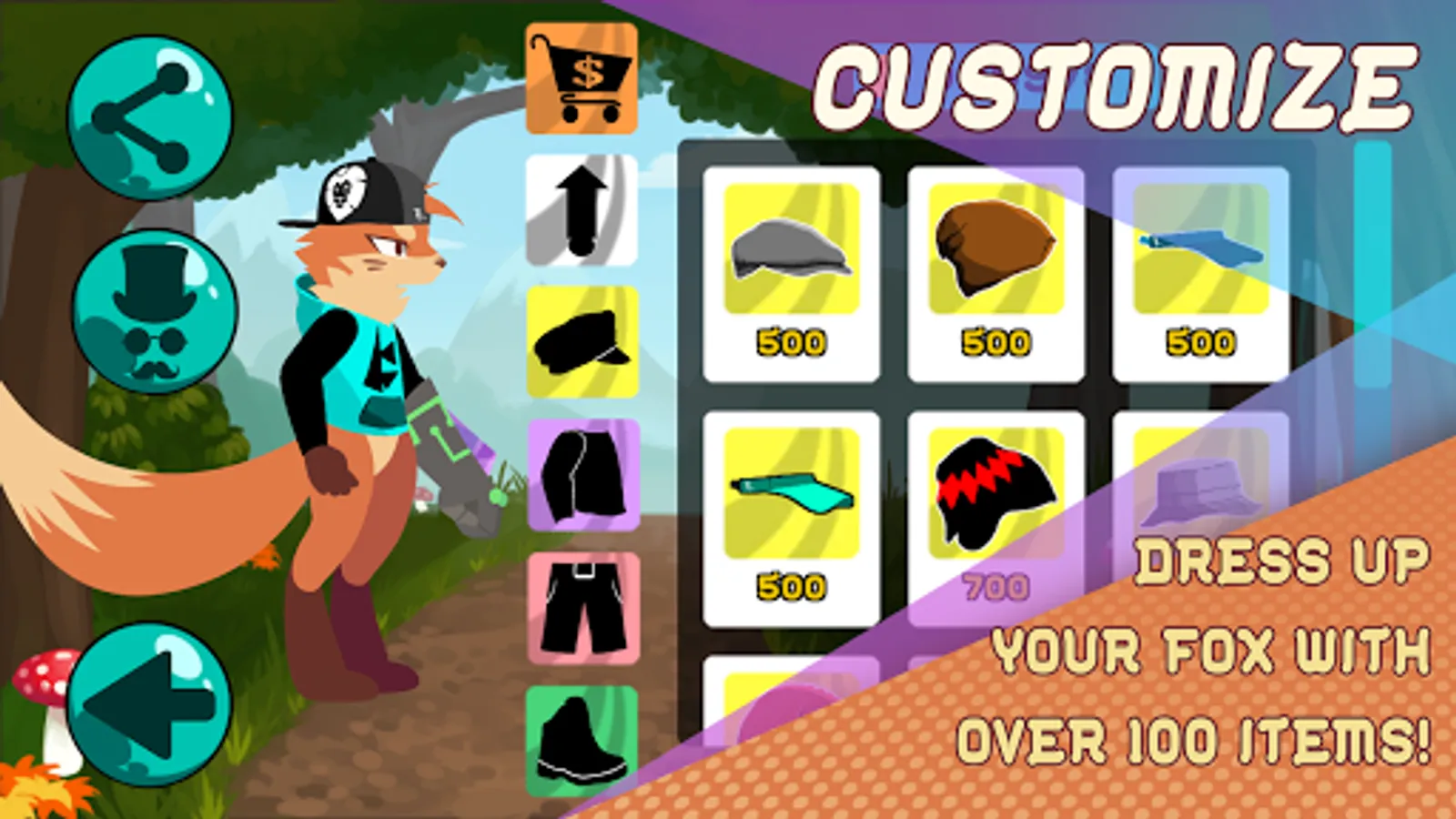 Improve your skills the more you play, beat your own high scores and share them with your friends on social media! Want to show off your fox's newest fancy getup? Share that too!