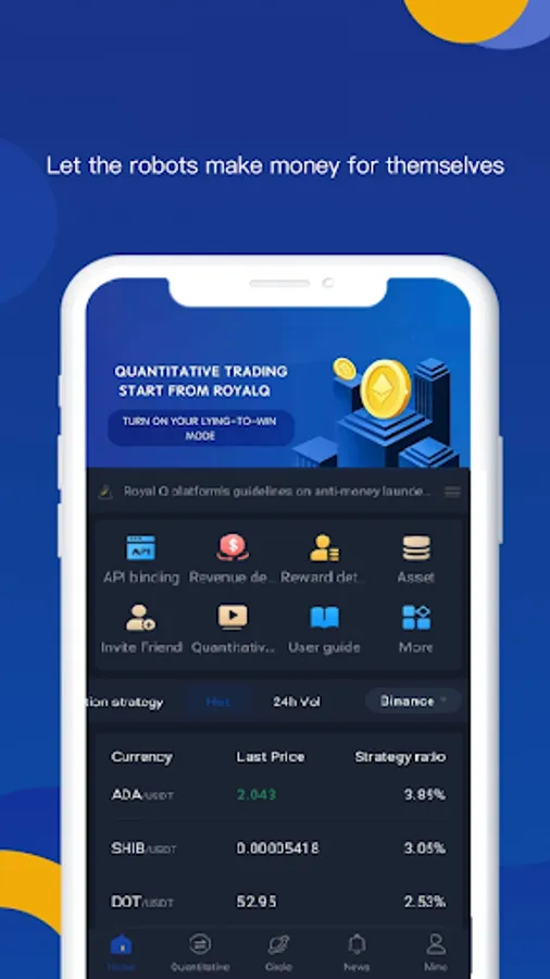 Earn money anytime from the cryptocurrency market. RoyalQ works 24/7, delivering a constant profit of 1% -5% every day for 365 days !!