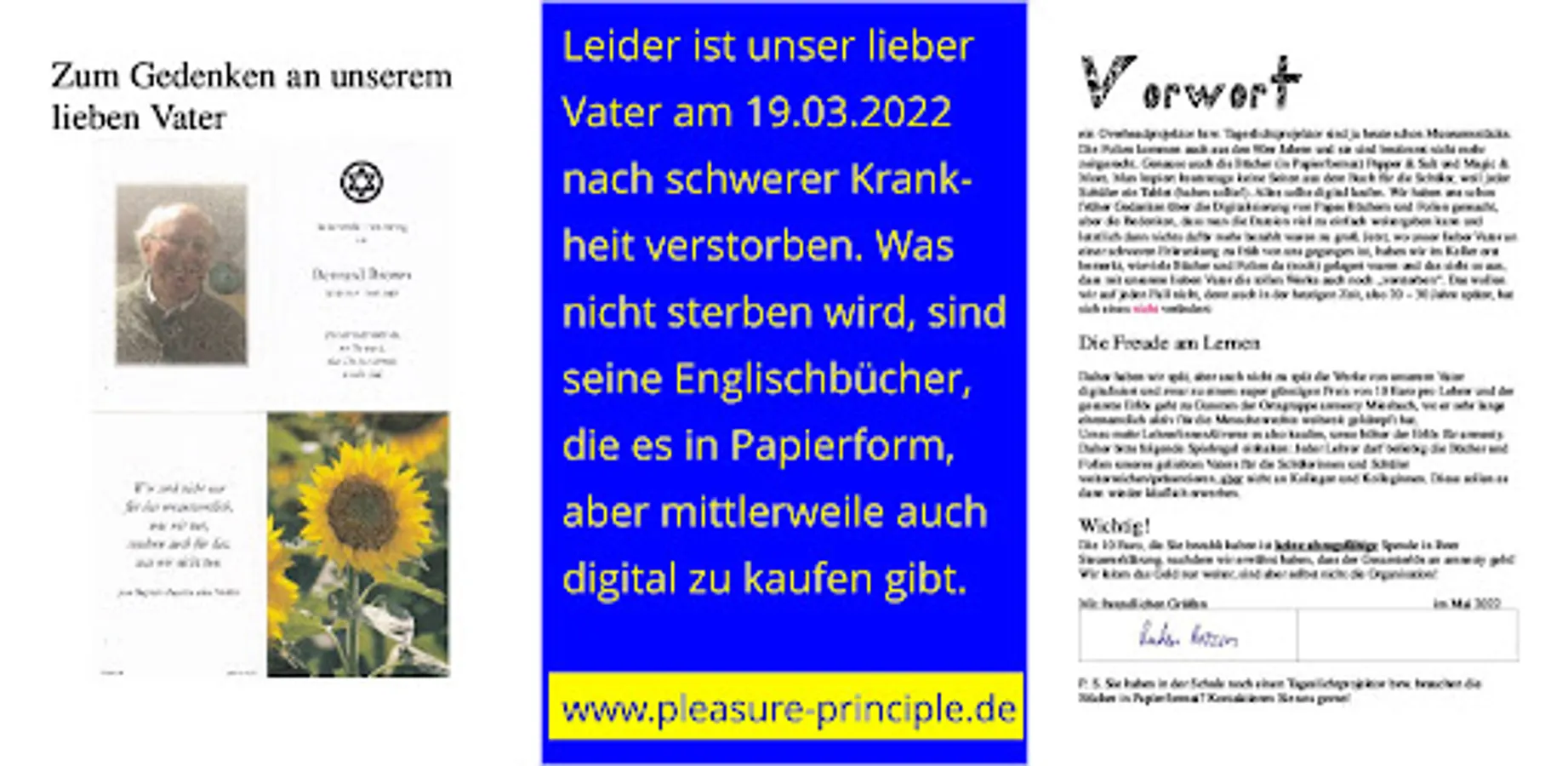 Unfortunately, the author of the book passed away. But what lives on are his books. These can be ordered from www.pleasure-principle.de