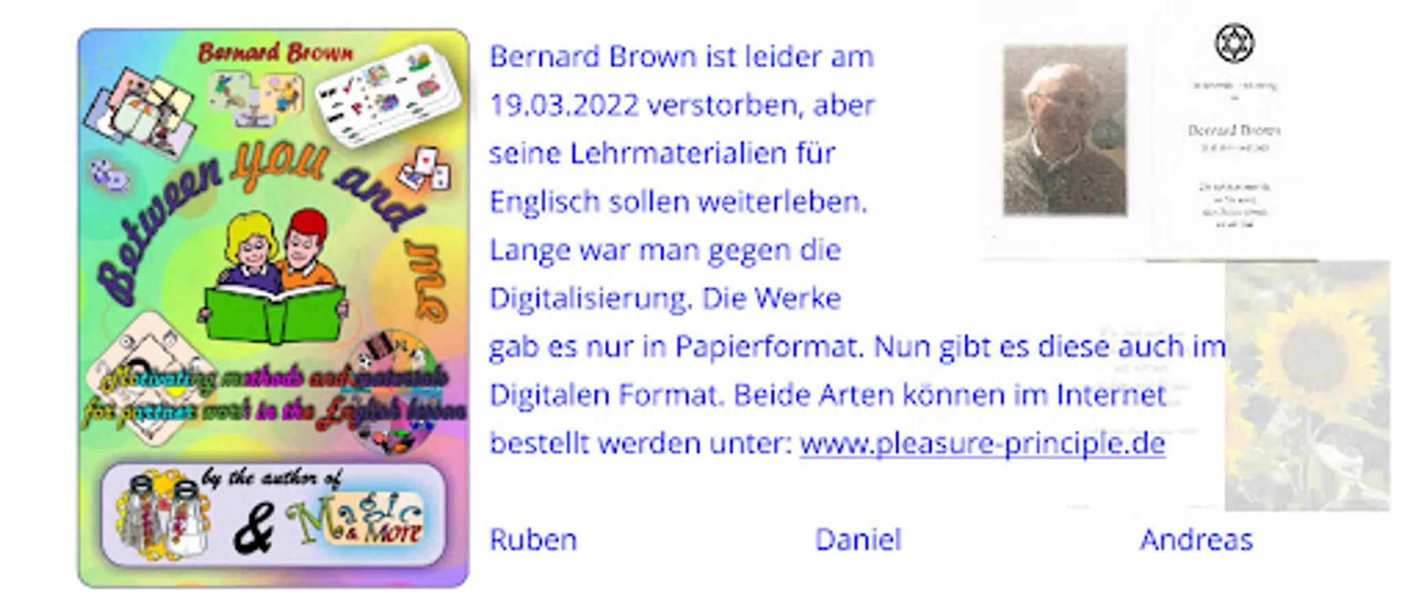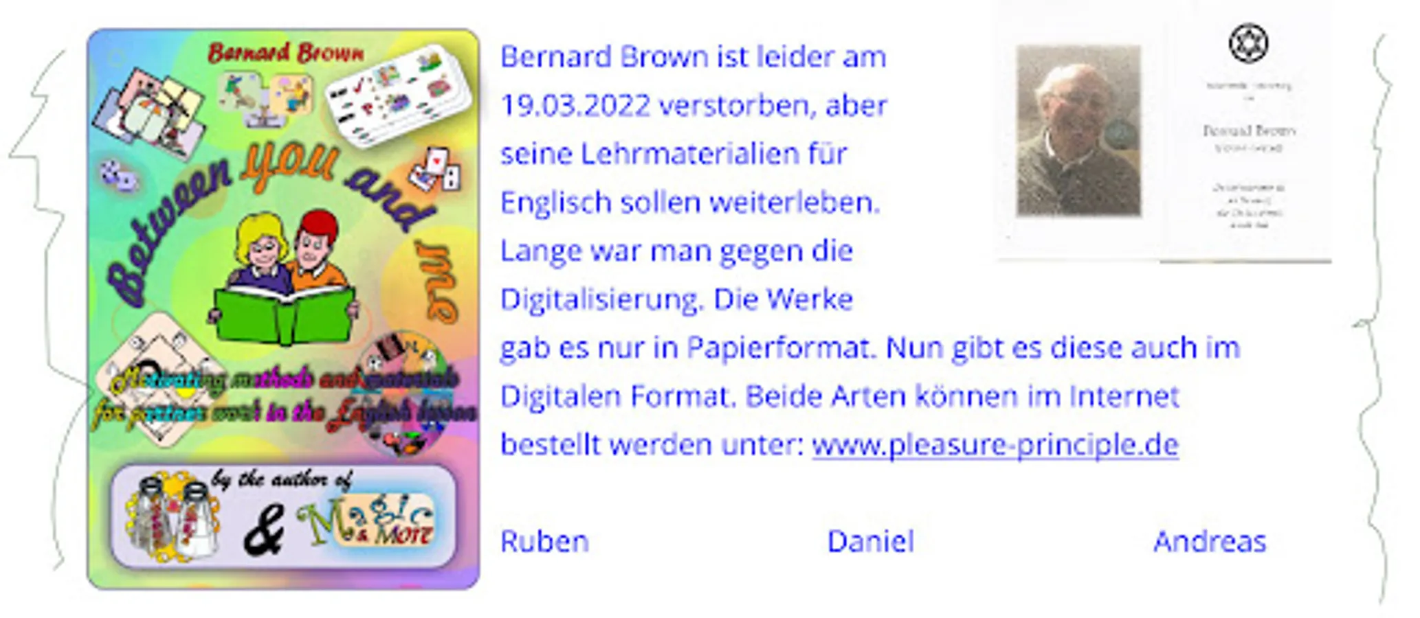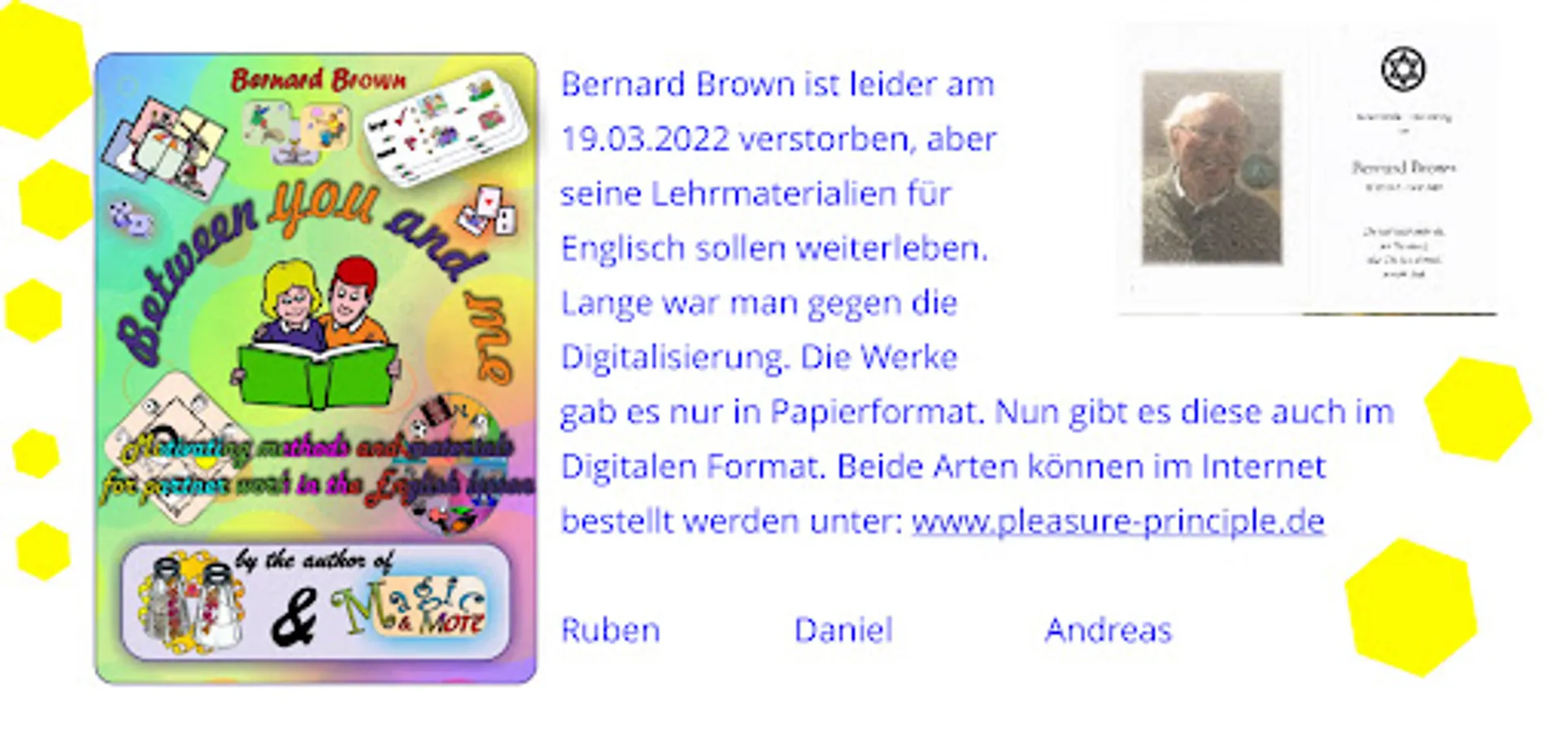 Unfortunately, the author of these teaching materials passed away after a serious illness on March 19, 2022. But his English works will live on. This app provides an overview of the only now published textbook specifically designed for English teachers.