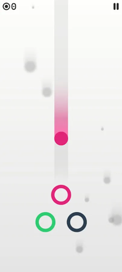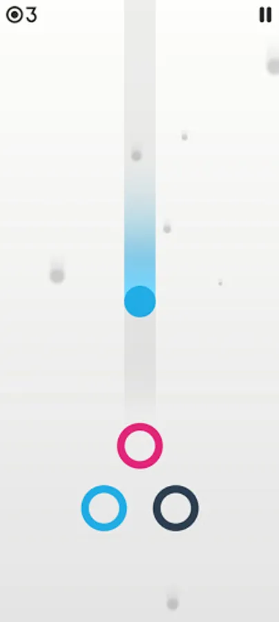 4. If the ball hits the ring with the correct color, the score is added and the game continues, otherwise the game stops and the loss menu is displayed.