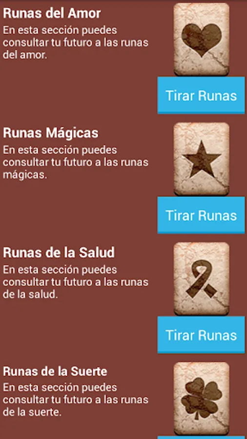 There are 22 runes mother. They are completing this game and in turn have multiple interpretations. Everything depends on the way the symbol appears, whether it is right or vice versa. The rune that appears we will inform us what kind of energy or what situation governs that moment or that day when we query. It's time to know the truth: we mark trends and attitudes to follow. In addition, we may make an omen on issues that may occur.