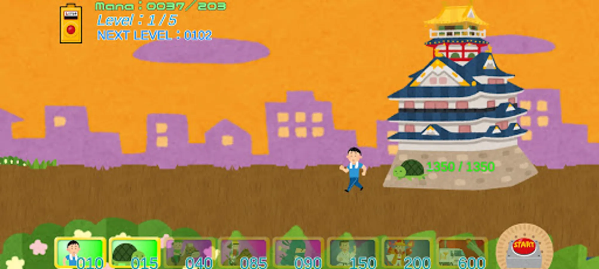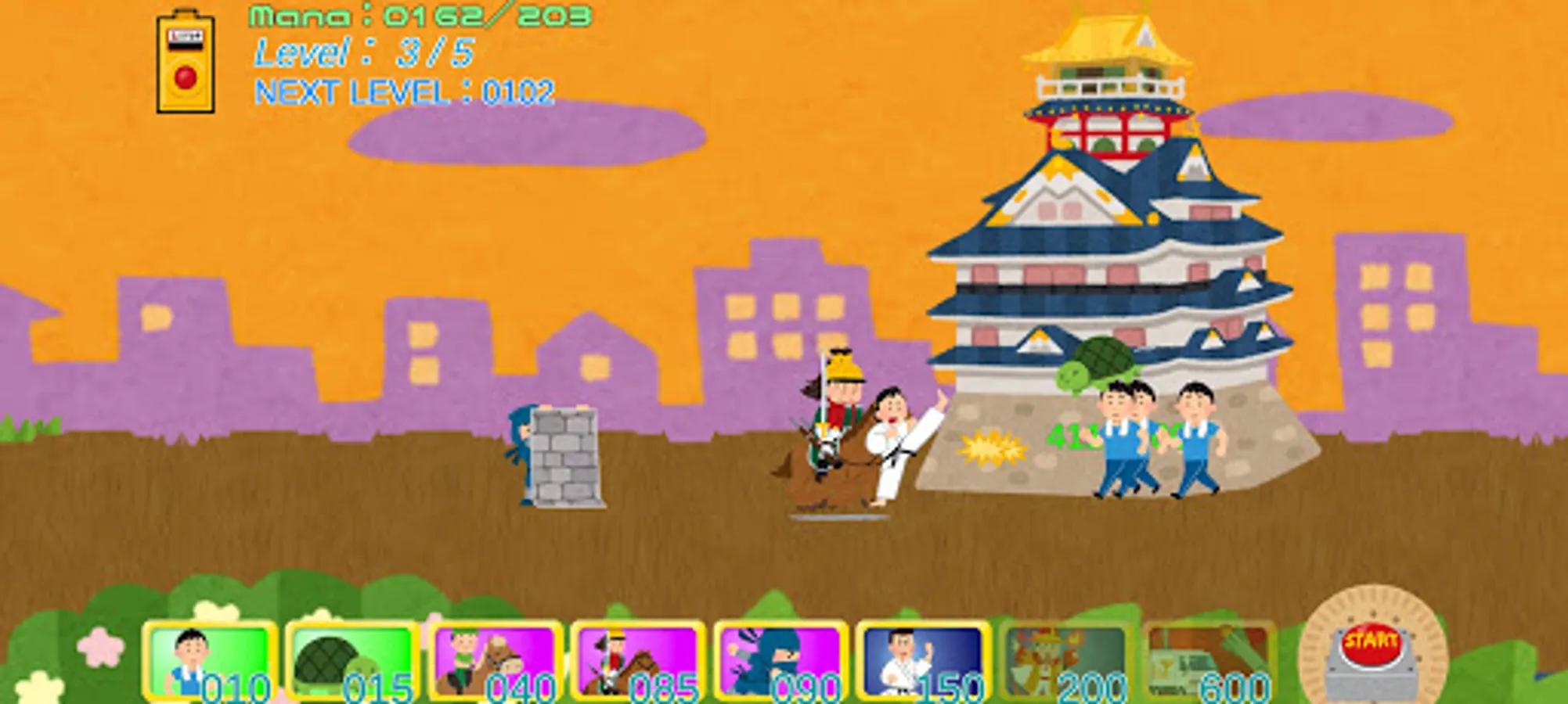 右下のStartボタンで城攻撃の使用、