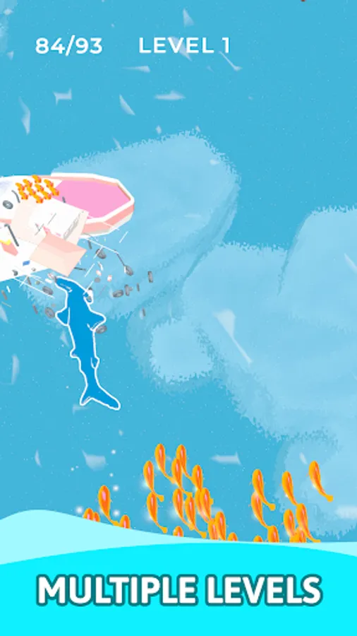 The game's mechanics are simple and intuitive, with players using touch controls to move the shark around the screen and tap to make it chomp down on fish or other objects. The game's colorful and cartoony graphics add to the fun and excitement, making it an enjoyable experience for players of all ages.