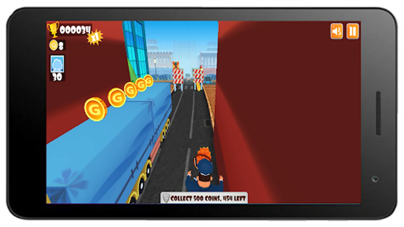 اللعبة ببساطة هي أنك تركض باستخدام شخصية بطل اللعبة للهروب من الشرطي وكلبه والركض فوق وتحت الحواجز وأعلى القطارات التي تواجهك وأثناء هروبك ، قم بجمع أكبر عدد من العملات الذهبية. حتى تتمكن من شراء أشياء في اللعبة ، وهي لعبة مجانية ومسلية تمامًا